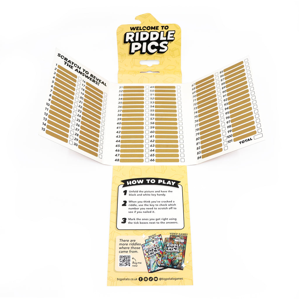 Unfold a giant poster packed with 101 visual riddles waiting to be solved! Scratch off the answers to reveal whether you've cracked each puzzle. Perfect for curious minds of all ages, solo adventurers, or family game nights.