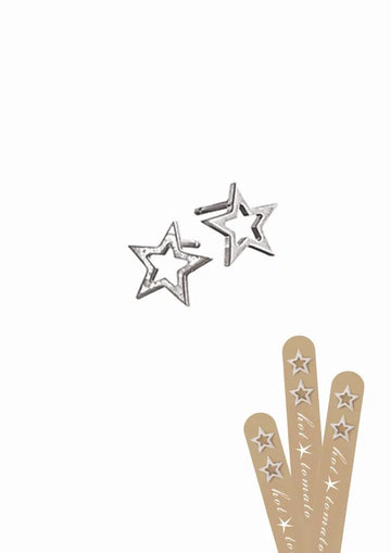 The Star Frame Studs - Stainless Steel with Worn Silver Finish brings a sprinkle of starry magic to your style with these Star Frame Studs. Made from sturdy stainless steel featuring a worn silver finish, they add a cheerful twinkle to any ensemble. Light and comfy, these earrings give your daily outfit a fun, subtle celestial glow.