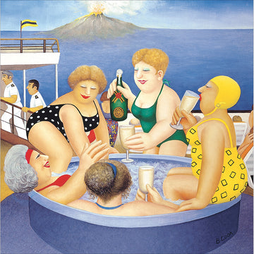 Toast to good times with the playful "Prosecco Party" card, featuring a charming Beryl Cook illustration. Perfect for celebrations, it captures the bubbly spirit of fun gatherings and adds a cheeky twist to any occasion.