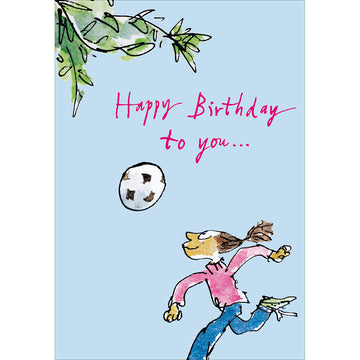 Celebrate with sporty charm using the Quentin Blake Birthday Footballer card! Featuring a lively illustration of a footballing girl, this card brings playful energy to any birthday.