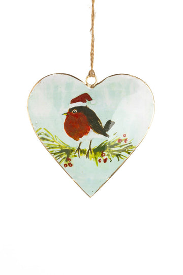 Add a sprinkle of festive cheer with the Shoeless Joe Heart decoration featuring a cheerful robin in a cosy hat. This playful hanging Christmas decoration is the perfect token gift to brighten up any holiday space with a touch of whimsy.