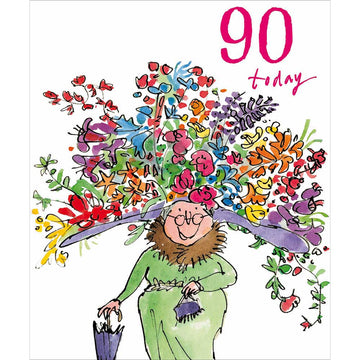 Celebrate a milestone with a splash of charm and whimsy! This 90 and fabulous birthday card features a delightful Quentin Blake illustration, capturing the joy and sparkle of turning 90. Perfect for sending playful wishes that bring a smile and a touch of artistic flair to any special birthday celebration.