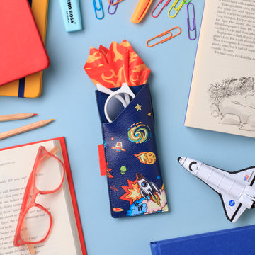 Love your lenses glasses sleeve - Rocket adds a fun boost to your eyewear routine with its vibrant, lined design featuring a bold space rocket print.